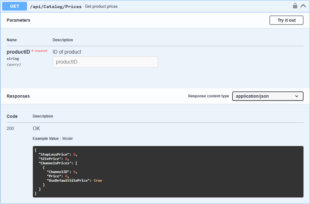 NOTE: Endpoint “GET /api/Catalog/{productID}/Prices” is obsolete as it does not support special characters in the productID. Use the new endpoint presented in this article.